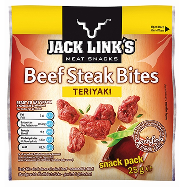 - JACK LINK’S Meat Snacks (großes Set) mit Chicken Bites (8 Tüten à 25 g u. 4x 75 g) plus 1x 25 g Beef Teriyaki für 17,90 €