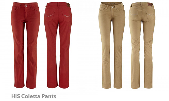- H.I.S Jeans Coletta – stretch denim, rust, coppice green, antique beige