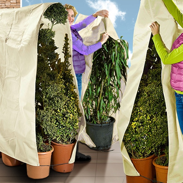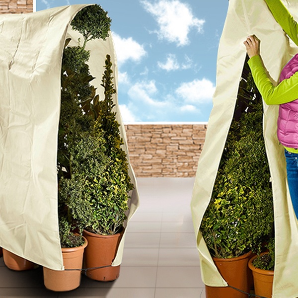 Lichtdurchlässige, zuschneidbare Säcke aus wasserabweisendem Vlies, die Kübelpflanzen, Bäume und Sträucher vor Kälte und Wind schützen