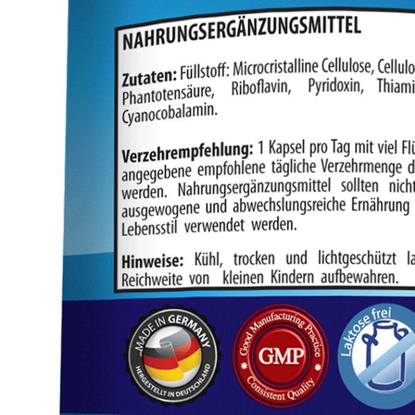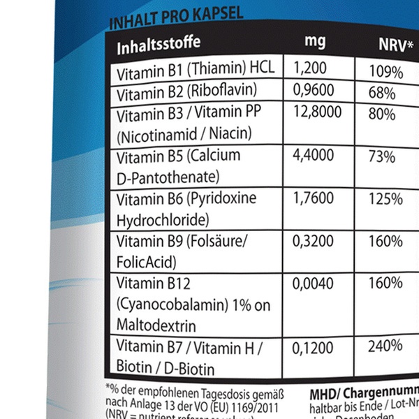- Mit den Vitaminen B1, B2, B3, B5, B6, B9, B12, B7