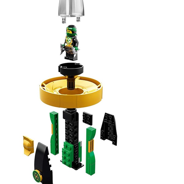 - Der Spinjitzu-Spinner verfügt über einen baubaren LEGO-Ziegelgriff, ein Spinner-Element mit Minifiguren-Kapsel und eine Reiß-Leine
