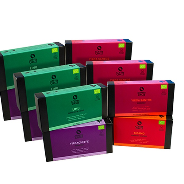 Kaffeekapseln kompatibel mit Nespresso-Maschinen, vertrieben von Coffee Circle – folgende Optionen stehen zur Auswahl: