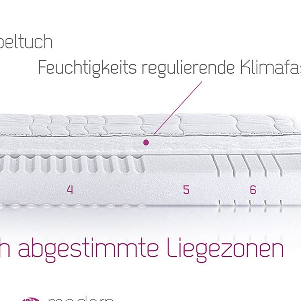 Liegekomfort dank sieben orthopädischer Zonen für eine angenehme Schlafhaltung für Rücken-, Seiten- oder Bauchschläfer