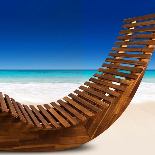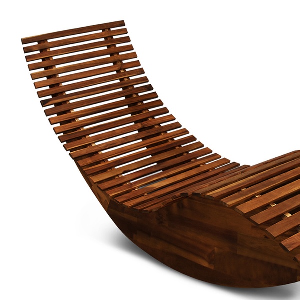 Die Schwungliege aus Akazienholz im modernen Design ist für den Einsatz In- und Outdoor geeignet