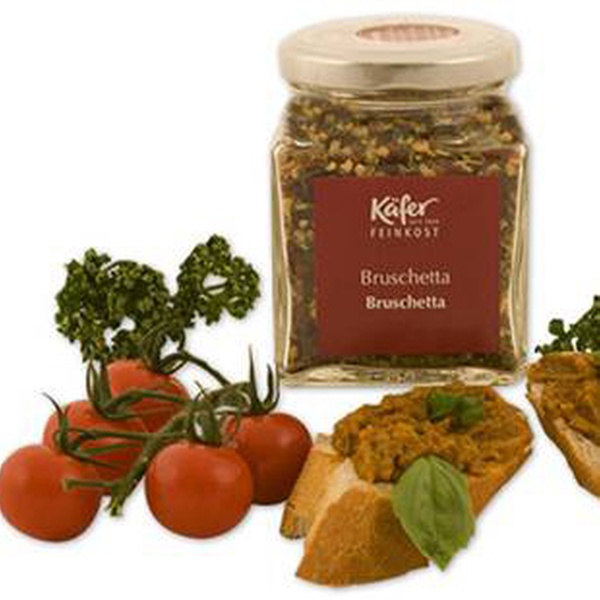 - Käfer Bruschetta Gewürz und / oder Brotaufstrich: Knoblauch, Chili, Basilikum, Meersalz, Petersilie