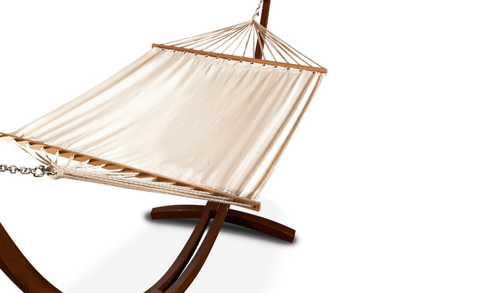 - Designer-Hängematte mit großer Liegefläche, Holzgestell und Dach für 149 statt 299 €