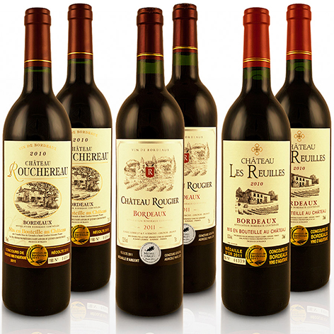 - 6er-Bordeaux-Weinset mit je 2x Château Rouchereau 2010, Château Les Reuilles 2010, Château Rougier 2011 für 34,99