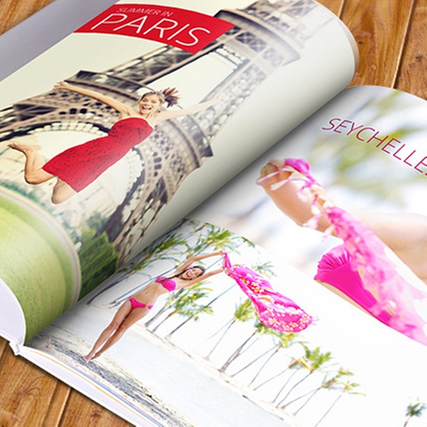 Hochwertig gearbeitetes Hardcover-Fotobuch nach einer breiten Palette an Design-Vorlagen individuell selbst gestalten