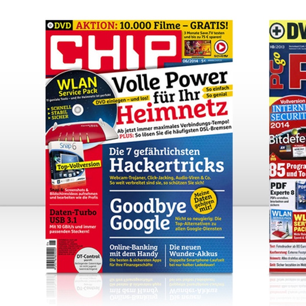 - Jahres-Abonnement für die Zeitschrift „Chip mit DVD“ oder „PCgo Classic DVD“ frei Haus für 19,90 €