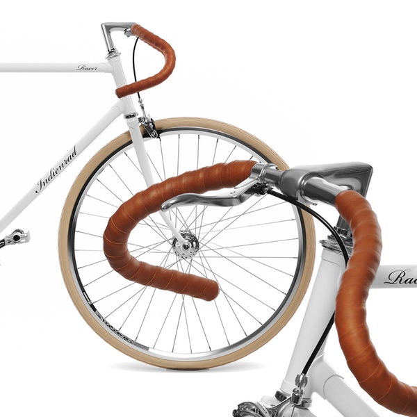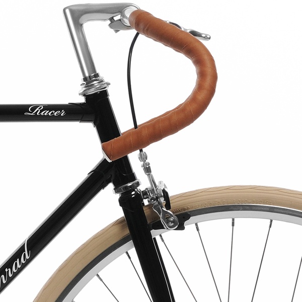 Nostalgischer Fahrrad-Klassiker mit 2-Gang-Schaltung, schwungvollem Rennlenker sowie Sattel und Lenkerband aus gegerbtem Rindsleder