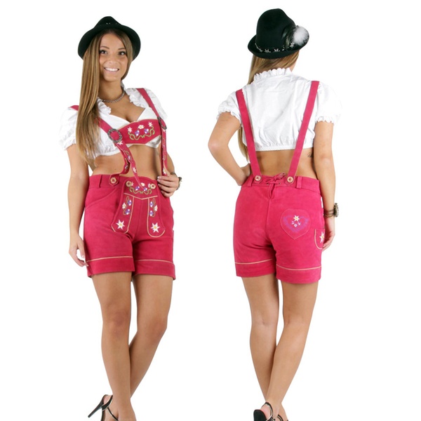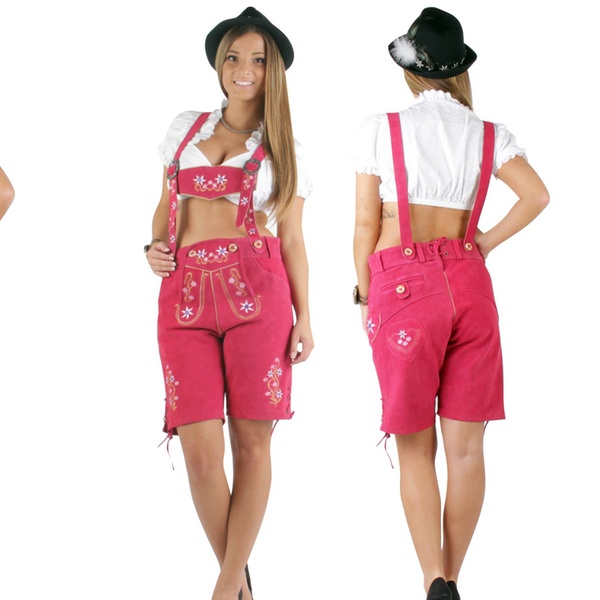 - Trachten-Lederhose “Heidi” in Türkis, Rot, Lila, Pink oder Hellbraun für 59,90 €