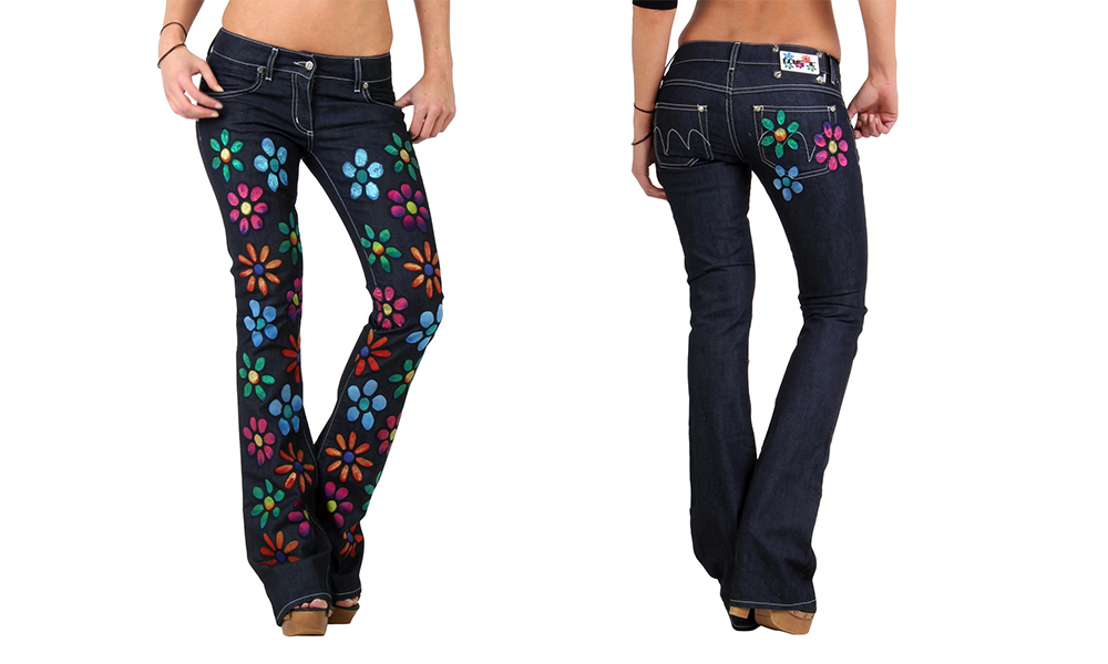 - Option 4: MET Damen-Jeans Bootcut Denim Funky Flowers Special Edition Blue, Größe 25 für 99,95 statt 179 €
