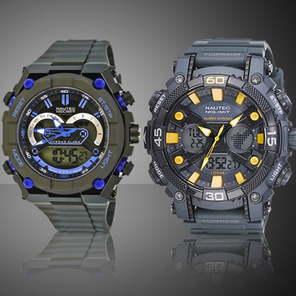 Die Multifunktions-Uhren von Nautec No Limit sehen nicht nur auf dem Fahrrad schick am Handgelenk aus. Wer sich gerne im Wasser bewegt, wird mit dieser Armbanduhr einen sportlichen Begleiter mit nützlichen Funktionen und wasserdichten inneren Werten finden. Die integrierte Stoppuhr sowie die Alarmfunktion und eine zweite Zeitzone unterstützen bei gezielten Aktionen. Die digitale Datumsanzeige hält den Träger stets auf dem neusten Stand. Drei eingelassene Digitalanzeigen zeigen die wichtigsten Daten auf einen Blick. Das formschöne, runde Gehäuse mit Edelstahldeckel und Lünette passt auch in die Alltagswelt und bildet so einen attraktiven Kontrast zu jeder Garderobe. Wer sich zusätzlich mit einem Countdown-Timer, einem Frequenzgeber und fünf einstellbaren Alarmen erfreuen möchte, wählt das Modell „Akula AD“.