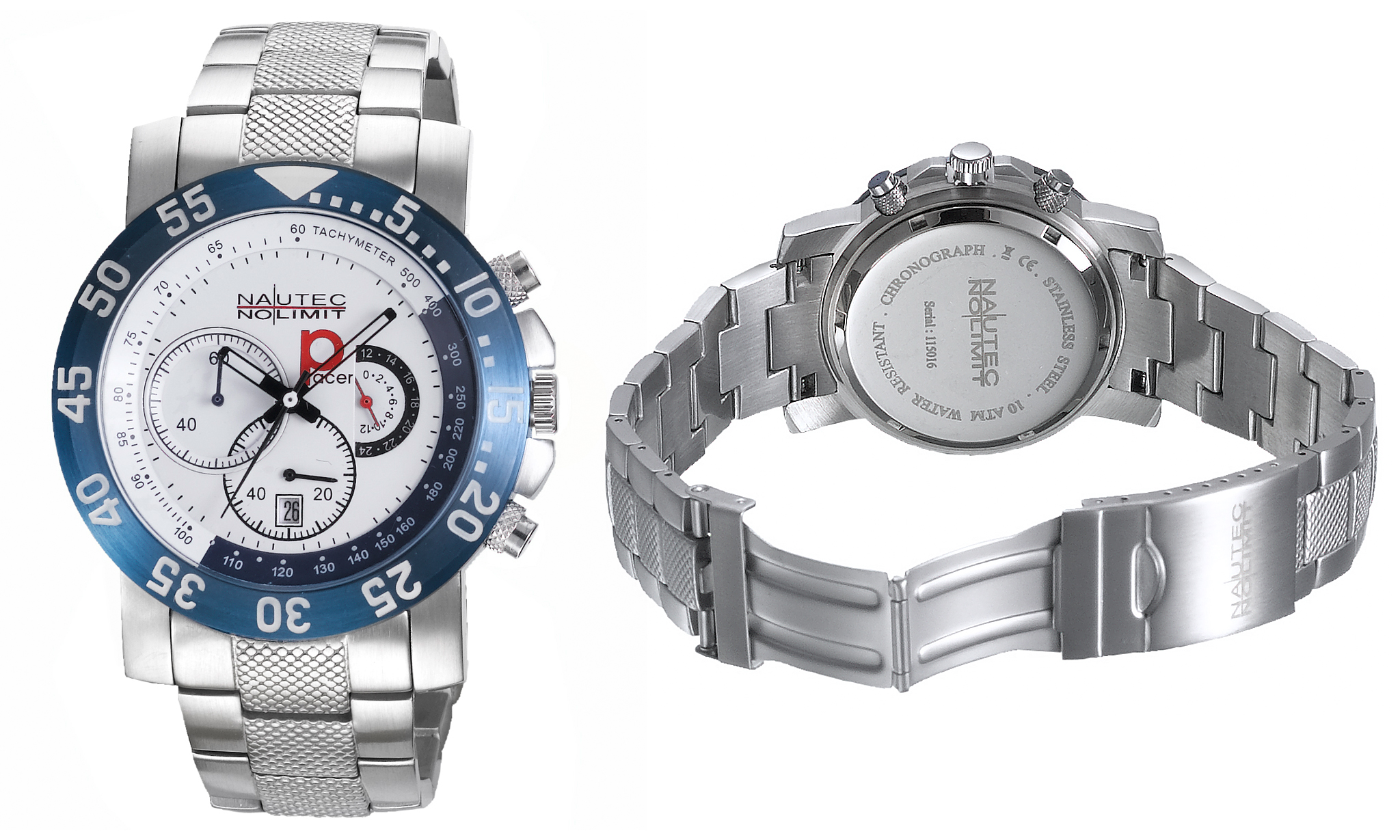 Die Multifunktions-Chronographen von Nautec No Limit sehen nicht nur schick aus: Wer sich gerne im Wasser bewegt, wird mit dieser Armbanduhr einen sportlichen Begleiter mit nützlichen Funktionen und wasserdichten inneren Werten finden. Das formschöne, runde Edelstahl-Gehäuse mit Edelstahldeckel und