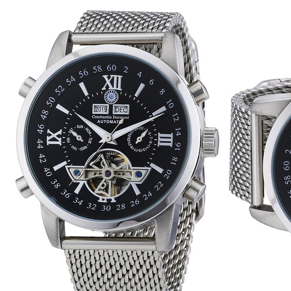 Constantin Durmont Herrenuhr CALENDAR Milanaise in Edelstahl-Schwarz (Modell CD-CALE-AT-STM2-STST-BK)