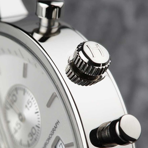 - Gebürstetes Ziffernblatt, je nach Option in Schwarz oder Silber