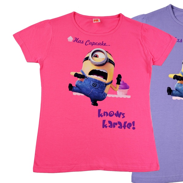Minions Kinder-T-Shirt in Rosa oder Lila, Größe 122/128, 134/140 oder 146/152 für 14,99 €