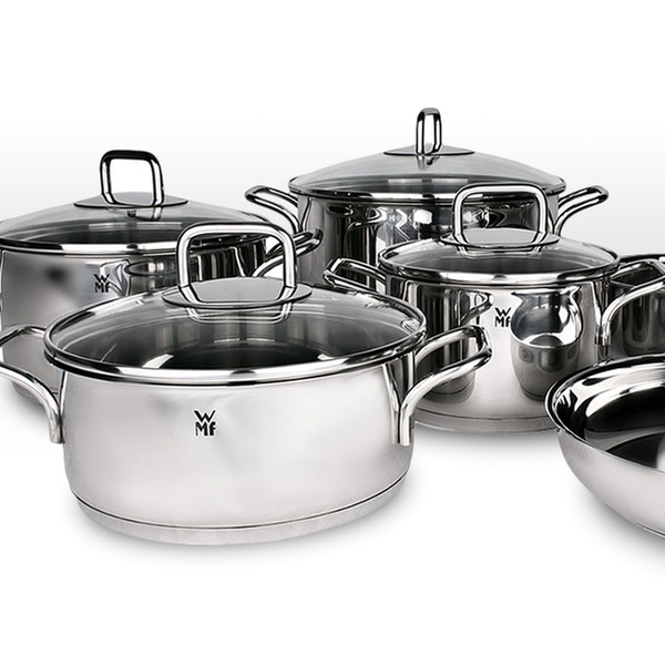 - Lieferumfang: 6-teiliges Kochgeschirr-Set ProfiSelect, 1x Bratentopf mit Deckel, 3x Fleischtopf mit Deckel, 1x Stielkasserole, 1x Bratpfanne