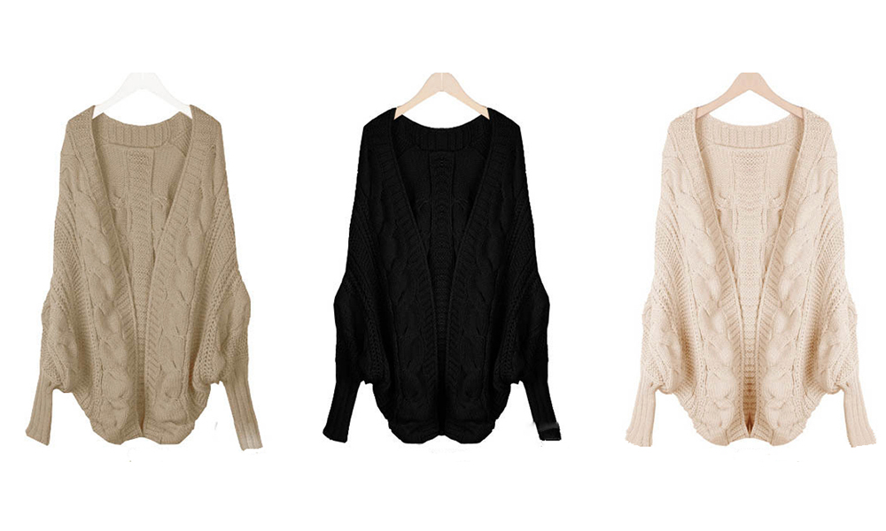 Oversize ist nicht nur modisch angesagt, sondern auch bequem und gemütlich. So vereinen die Cardigans mit weiten Fledermausärmeln ausgesprochenen Tragekomfort mit stilsicherer Eleganz bei kühleren Temperaturen. Die Jacken aus 100% Baumwolle sind in den klassischen Farben Schwarz, Weiß und Beige erhältlich und werden in Einheitsgröße geliefert.