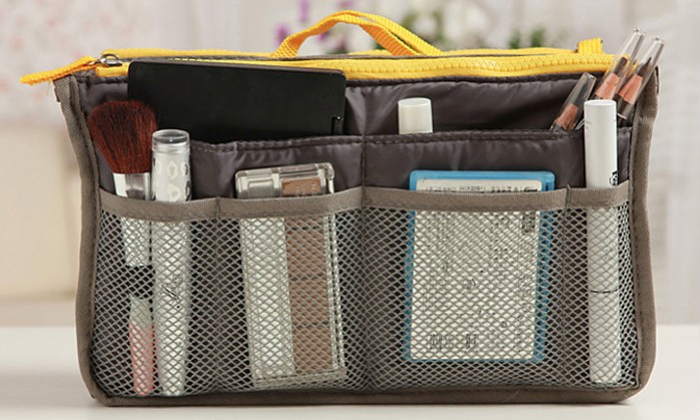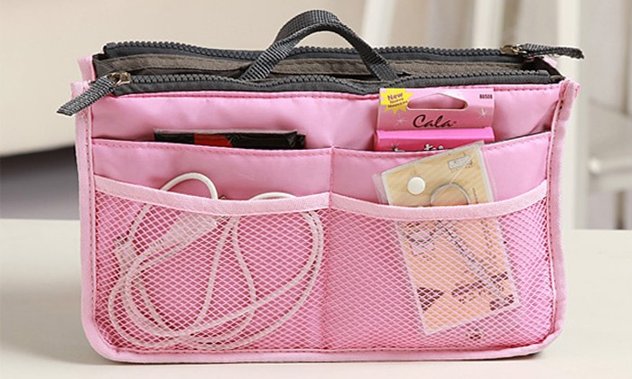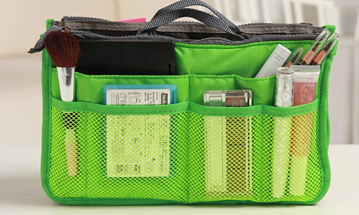 Praktischer Handtaschen-Organizer mit unterschiedlich großen Fächern für Sonnenbrillen, Make-up, Smartphone und mehr in verschiedenen Farben