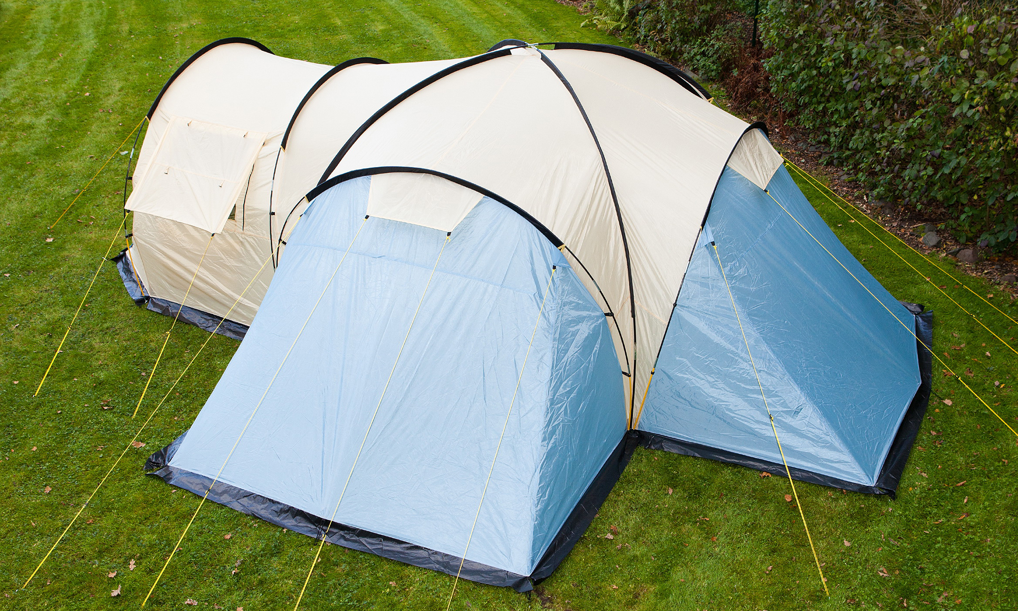 Schneller Aufbau, hohe Stabilität, optimales Raumklima und hoher Komfort beim Gruppen- oder Familienurlaub in freier Natur