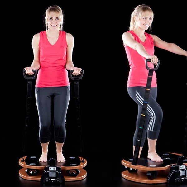 Vibrierende Trainingsfläche mit kompakten Abmessungen, Transportrollen, LCD-Anzeige, 4 Trainingsprogrammen und DirectDrive-Motor-Antrieb