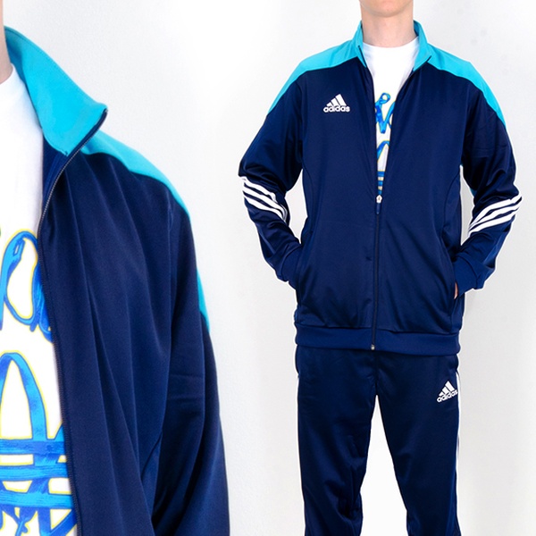 - adidas Polyester-Trainingsanzug Sereno 14 in Cobalt/New Navy, Schwarz-Silber oder New Navy/Super Cyan, Größe S, M, L, XL oder 2XL für 39,95 €
