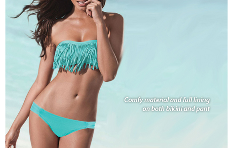 - Option 10: Bandeau-Bikini „Miami“ in Türkis, Größe M für 24,99 €