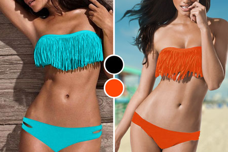 - Option 12: Bandeau-Bikini „Miami“ in Orange, Größe S für 24,99 €