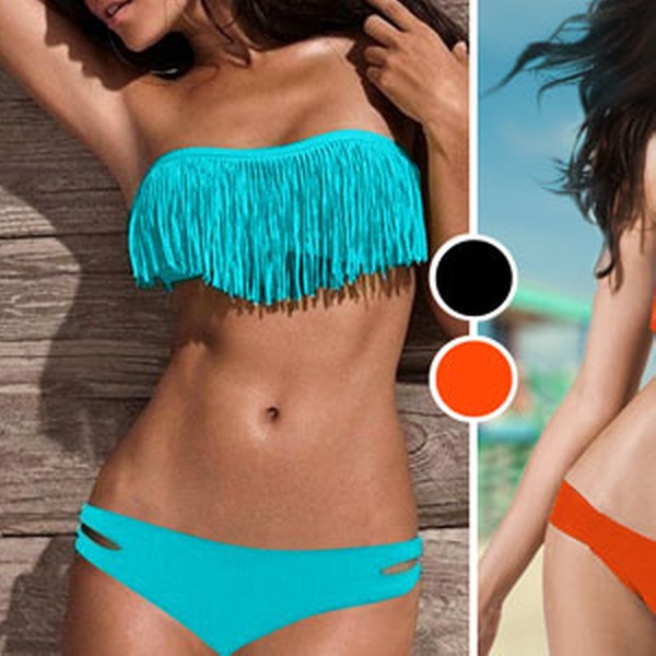 - Option 13: Bandeau-Bikini „Miami“ in Orange, Größe M für 24,99 €