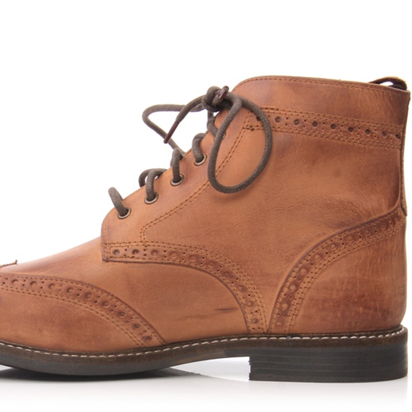 Klassischer Fullbrogue mit zierenden Lochornamenten, Flügelkappe und flachem Absatz; erhältlich in den Herrengrößen 41 bis 45