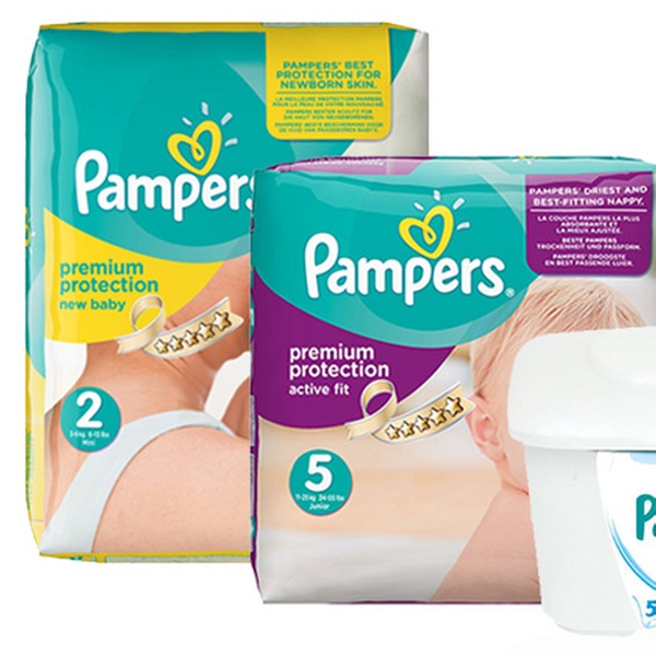 - Pampers Premium Protection™ für bis zu 12 Stunden Trockenheit