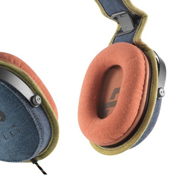 Trendige Bügelkopfhörer im Aviator-Style in Carmel oder Blue Denim mit weichen Bambus-Faser-Ohrpolstern, Mikrofon und 3-Tasten-Bedienfeld