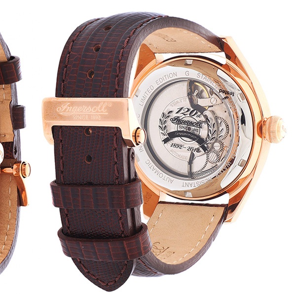 - Ingersoll Herren-Uhr REMINGTON Limited Edition in Braun-Rotgold-Weiß (Modell IN8008RWH) für 129,95 €