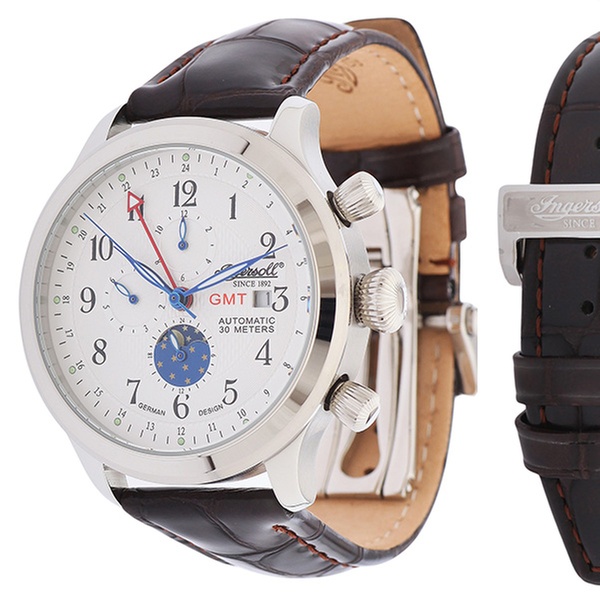 Ingersoll Herren-Uhr JEFFERSON Limited Edition in Schwarz-Silber-Weiß (Modell IN6802SL) oder Braun-Rotgold-Weiß (Modell IN6802RSL)