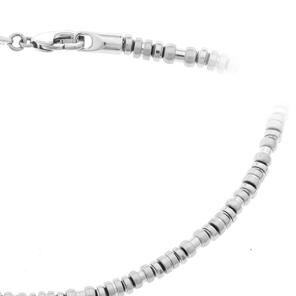 - Halskette aus poliertem und mattem Edelstahl mit beweglichen Bandelementen