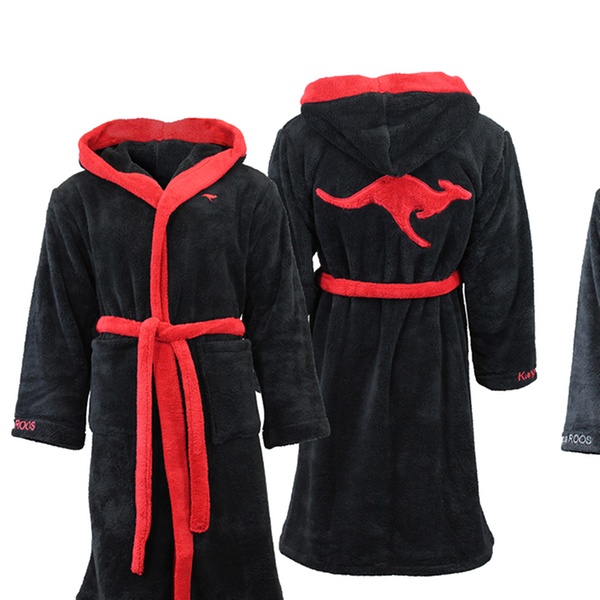 - KangaROOS Unisex-Bademantel mit Taschen, Kapuze und Gürtel in Dunkelblau-Blau, Weiß-Grau, Schwarz-Rot oder Anthrazit-Hellgrau, Größe 5XL-8XL für 39,95 €