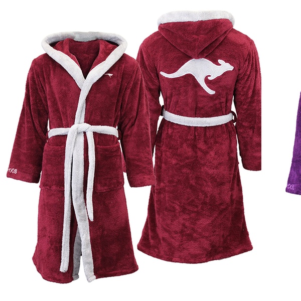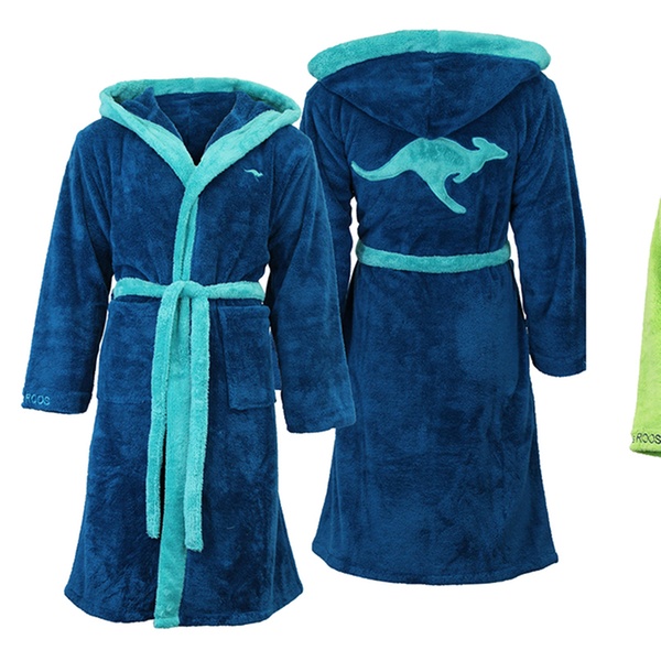 - KangaROOS Unisex-Bademantel mit Taschen, Kapuze und Gürtel in Dunkelblau-Blau, Weiß-Grau, Schwarz-Rot, Anthrazit-Hellgrau, Blau-Türkis, Grün-Dunkelblau, Bordeaux-Hellgrau oder Beere-Pink, Größe S-XXL für 29,99 €