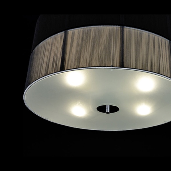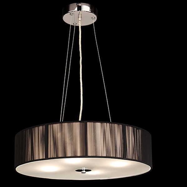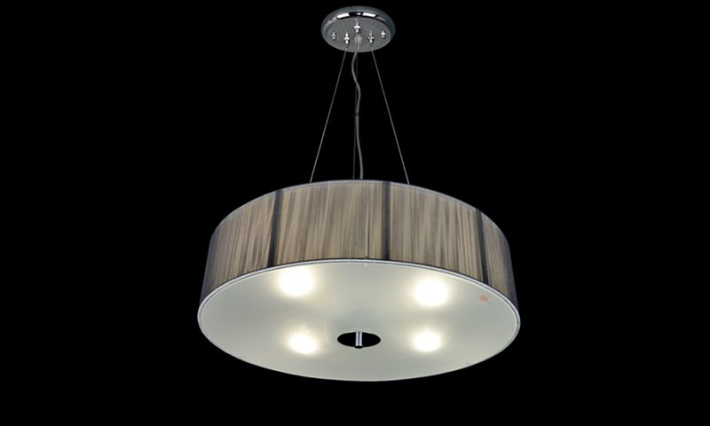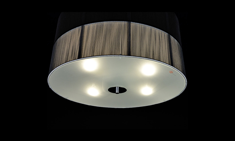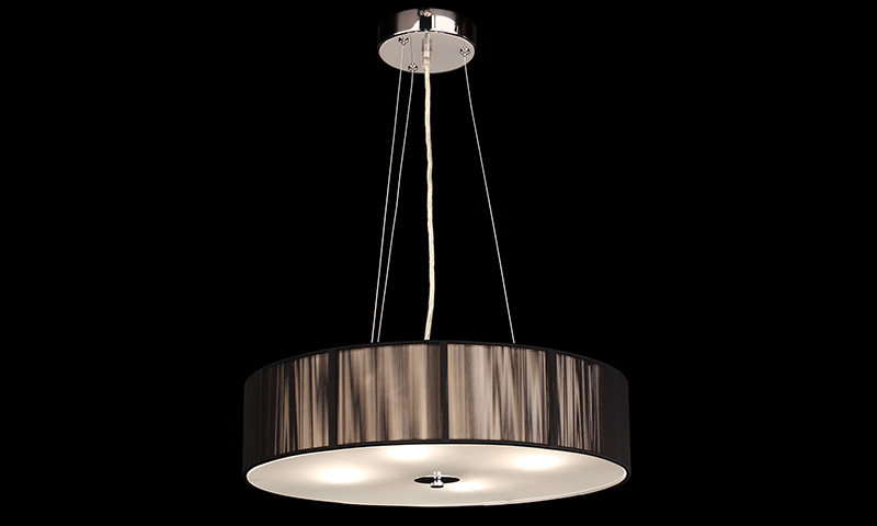 - Besonderheiten: Höhenverstellbare Stahlseile, Fadenstoff in Schwarz, satinierte Glasabdeckung und Lichtdiffusor