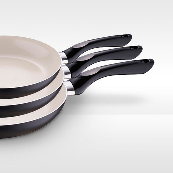 Die drei spülmaschinenfesten und antihaftbeschichteten Bratpfannen im Durchmesser 20, 24 und 28 cm sind für alle Herdarten geeignet