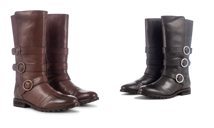 Born to be wild – die Stiefel im Biker-Look sorgen nicht nur für bequemes Laufen oder Motorradfahren, sondern sehen auch zu jedem Outfit großartig aus. Durch den Reißverschluss lässt sich der Stiefelschaft individuell an den Style anpassen: länger zu Röcken oder passgenau für Jeans. Drei Schnallen geben dem kniehohen Lederboot das gewisse Etwas.