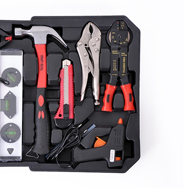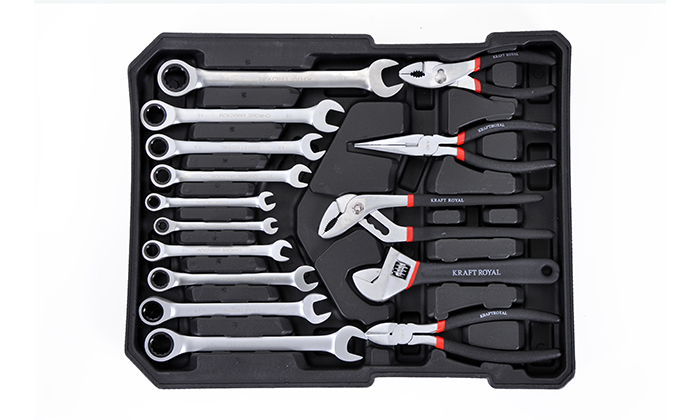 Ich mach das schon: Selbst ist der Mann oder die Frau mit dem Werkzeugkoffer von KraftRoyal, denn mit diesem Heimwerkerschatz liegen 186 professionelle Werkzeuge stets griffbereit im praktischen Alutrolley. Universalmesser, Wasserwaage, Schraubenschlüssel, Wasserpumpenzange, Isolierband, Klauenhammer: Die Utensilien eignen sich für Reparaturen aller Art, unterschiedliche Heimwerkerarbeiten und Basteleien am Haus, Auto und Garage. 186 praktische Teile sind aus edlem Chrom-Vanadium gefertigt, das sich durch eine hohe Stabilität auszeichnet. Die Werkzeuge sind platzsparend verstaut und im Alukoffer auch leicht zu transportieren.