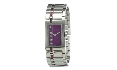 - Zifferblatt auf lila Hintergrund, silber-polierte Zeiger, Esprit-Logo