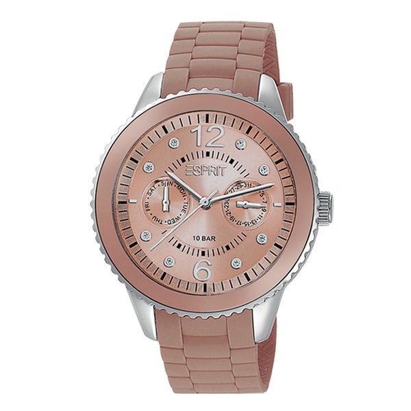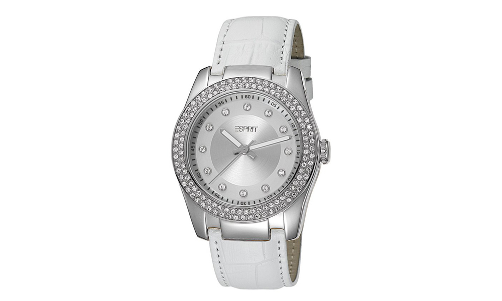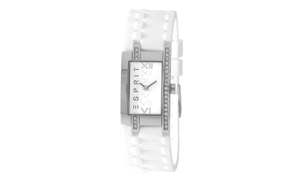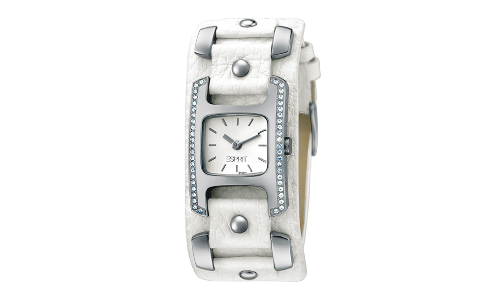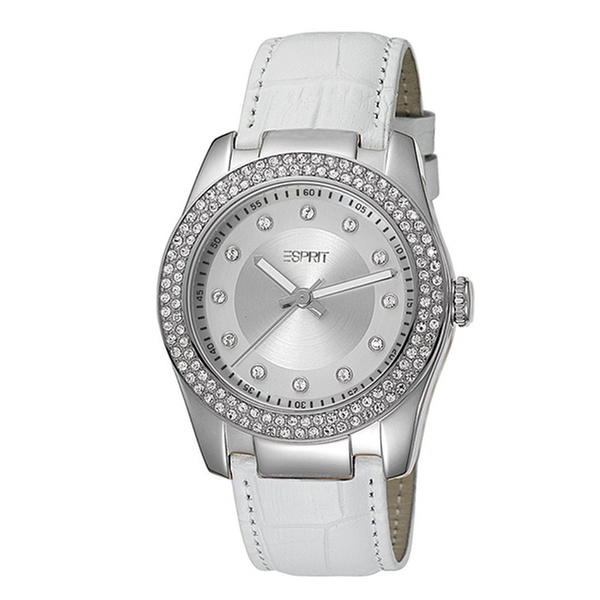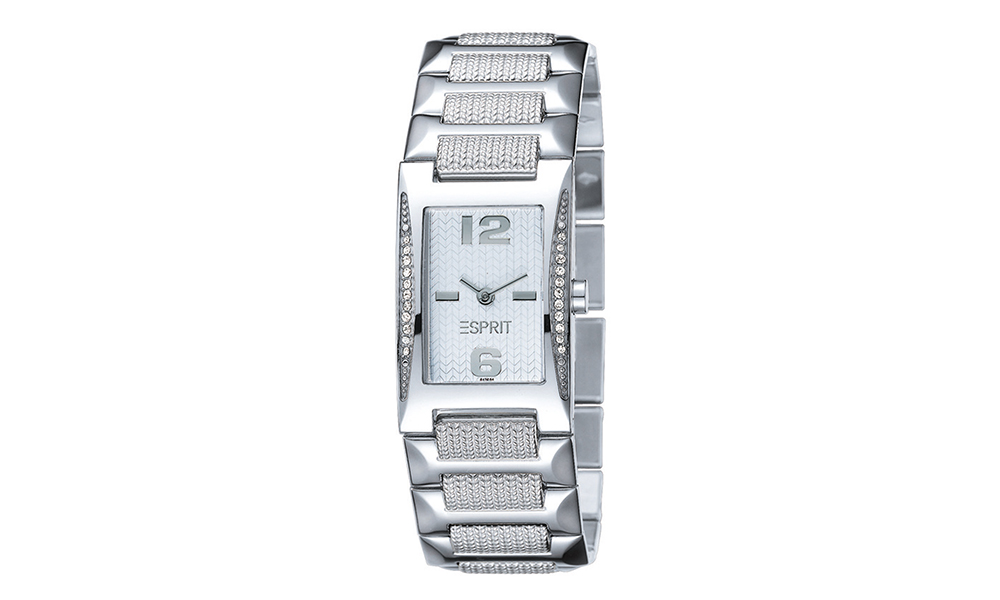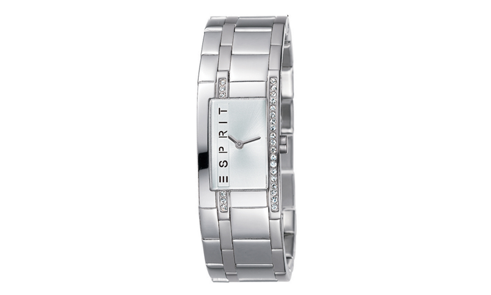 - Zifferblatt auf rhodiniertem Hintergrund, silber-polierte Zeiger, Esprit-Logo
