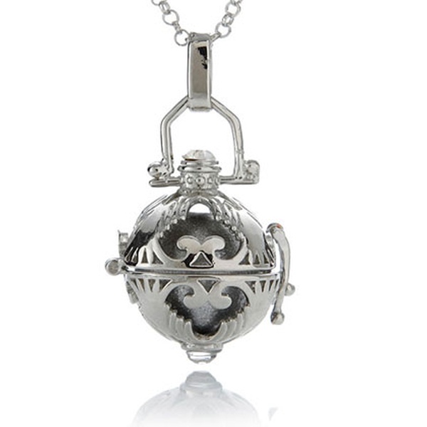 Klangkugel, die bei jeder Bewegung mit himmlischen Klängen ertönt, optional mit Halskette und aufklappbarem Anhänger mit Ornamenten