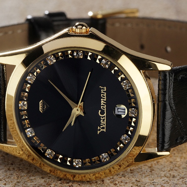 - Yves Camani Damen-Armbanduhr Golden Twinkle 302-GSG in Schwarz für 24,95 €