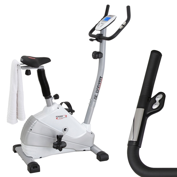 - Features: Neigungswinkelverstellbarer Lenker mit hygienischer und robuster Griffummantelung, Pulsmessung über integrierte Handpulssensoren, 8 Stufen Widerstandseinstellung, Computer mit übersichtlicher großer LCD Anzeige, Blue Back Light, Steuerung durch Push Buttons, integrierte Transportrollen vorne, Niveau Bodenausgleich zum Ausgleich von Bodenunebenheiten und sicheren Stand, Gewichtspedale, tiefer Einstieg, Handtuchhalter