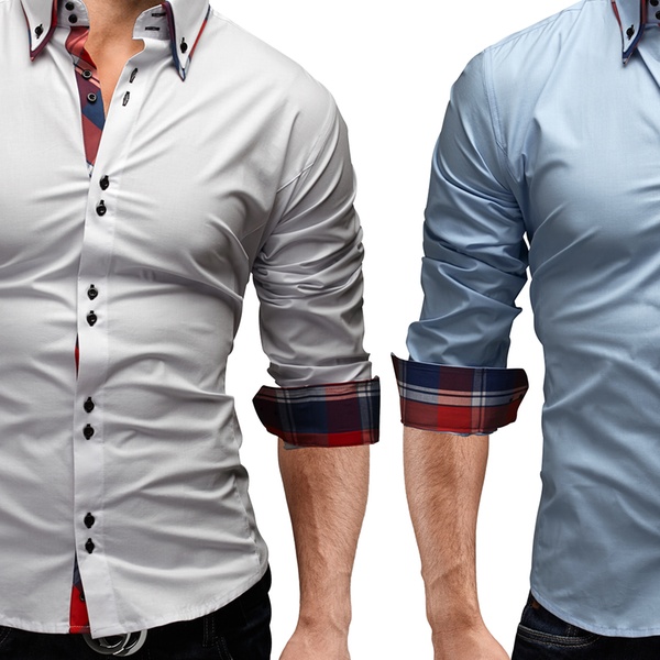 - Merish 17 Herren-Hemd mit Kontrastkragen in Blau, Größe XL und XXL für 19,99 €