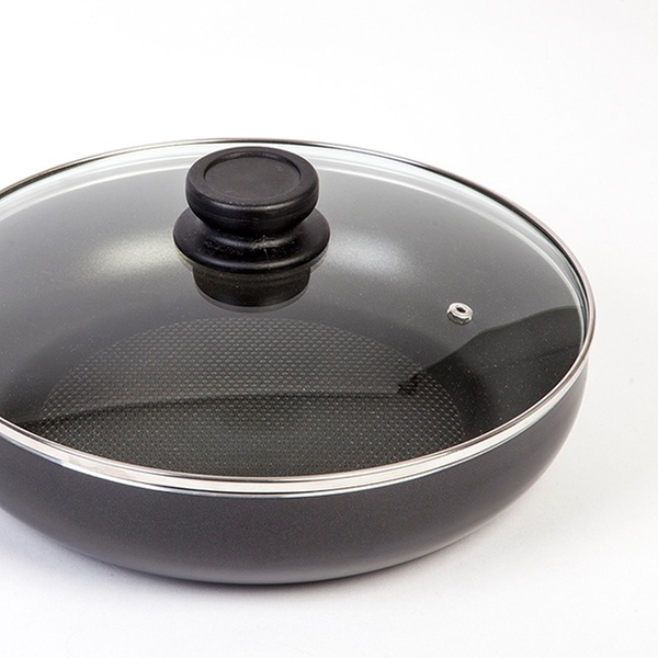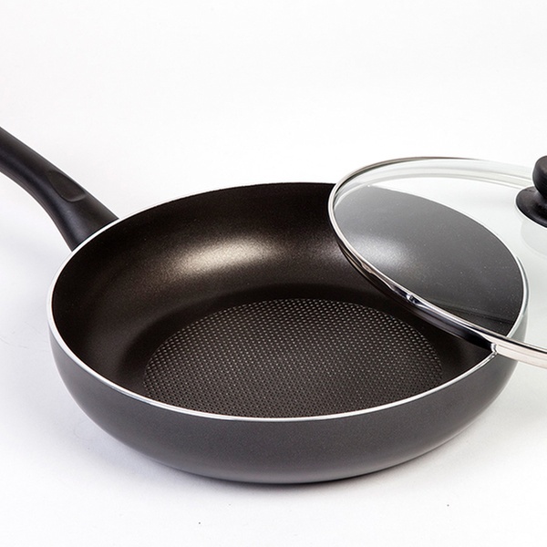 Die beschichtete Pfanne mit Glasdeckel ist für eine Vielzahl an Herden und Kochplatten geeignet und ermöglicht fettarmes Braten und Kochen