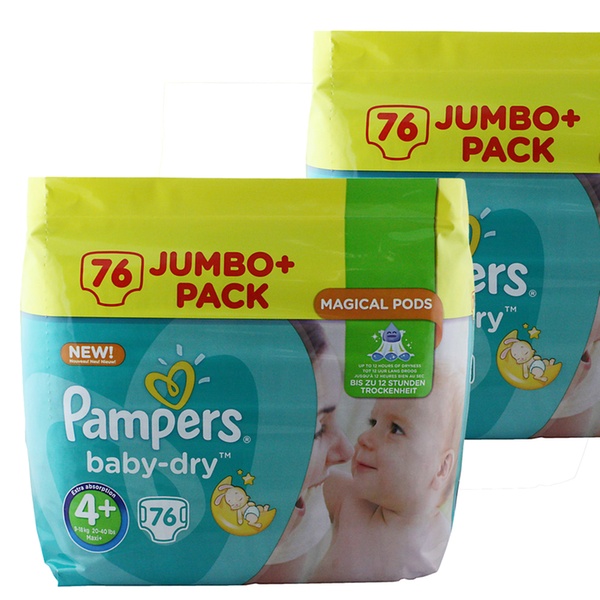 - 2x Pampers Baby Dry Größe 4+, 76 St (152 Stück) (Grundpreis: 1 St = 0,21 €)